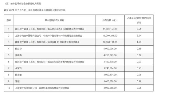除了存量ETF持续吸金以外,近期新成立的ETF也频现机构身影。以鹏华中证800ETF为例,截至7月5日,前十名场内基金份额持有人包括循远安心金选十六号私募证券投资基金、宁苑沛华稳定增长一号私募证券投资基金、银叶信玉精选私募证券投资基金等。
