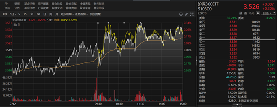 今日开盘后不久,仅半小时,华泰柏瑞沪深300ETF成交额就超过10亿元。截至上午收盘,华泰柏瑞沪深300ETF成交额超过24亿元。14时后,成交量也有所增加。截至收盘,该ETF全天成交额为44.23亿元。上周五,该ETF全天成交额为30.67亿元。