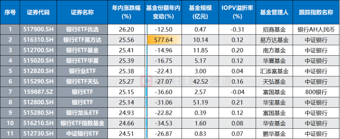 注:银行相关ETF年内表现(基金份额、规模截至7月12日,其余数据截至7月15日收盘)