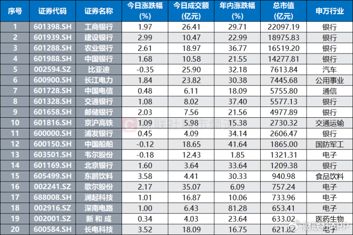 注:总市值居前且今日创年内新高的个股(截至7月15日收盘)